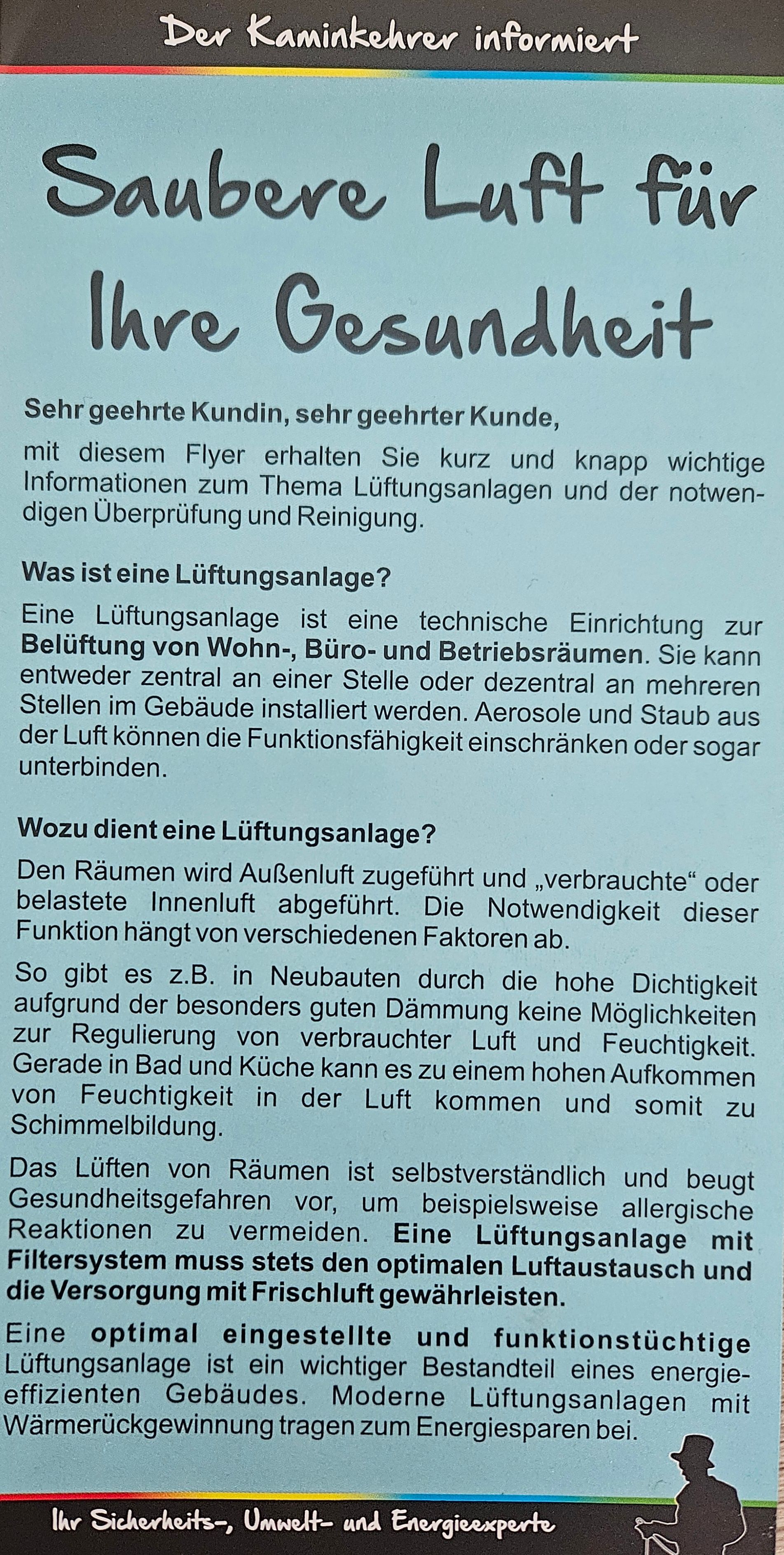 Ihre Lüftungsanlage sorgt täglich für frische Luft und ein gesundes Raumklima. Damit sie zuverlässig funktioniert, sollte sie regelmäßig gereinigt und gewartet werden. Wir unterstützen Sie dabei gerne!